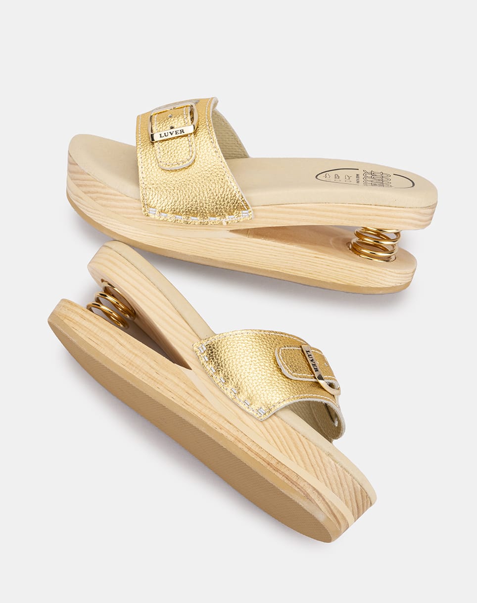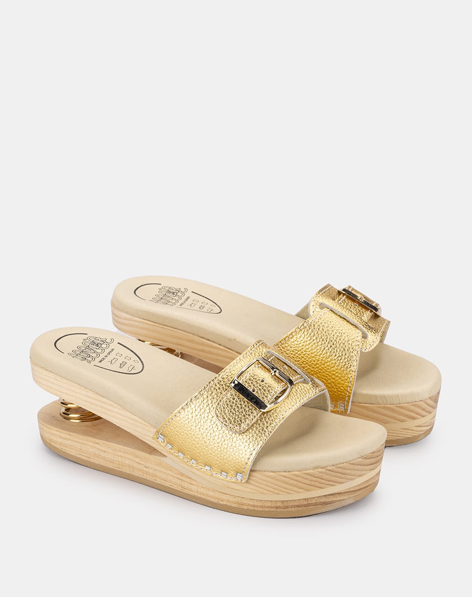 Sandalia con muelle y planta anatómica de piel. Ideales para el buen tiempo. Totalmente ajustables a diferentes anchos de pie. La incorporación del muelle entre dos suelas amortigua el impacto de cada uno de nuestros pasos, estimulando la circulación sanguínea y las articulaciones, reduce el cansancio, trauma y contusiones y alivia la zona cervical.